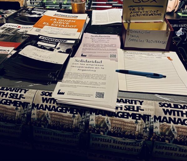 Am Samstag (20. September) unterstützen wir beim Sudaca Fest 2025 mit einem kleinen Infostand die argentinischen selbstverwalteten Betriebe im Kampf gegen die Millei-Administration. Der argentinische Selbstverwaltungssektor ist der größte weltweit, mit über 400 Arbeiter:innen-Kooperativen im ganzen Land – von Industriebetrieben und Lebensmittelproduzenten bis hin zu Dienstleistern aller Art, einschließlich Schulen und Krankenhäusern. Insgesamt sind rund… Sudaca Fest Berlin weiterlesen